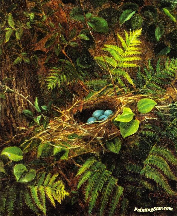 Still LIfe with Robin's Nest, Art Painting by Fidelia Bridges