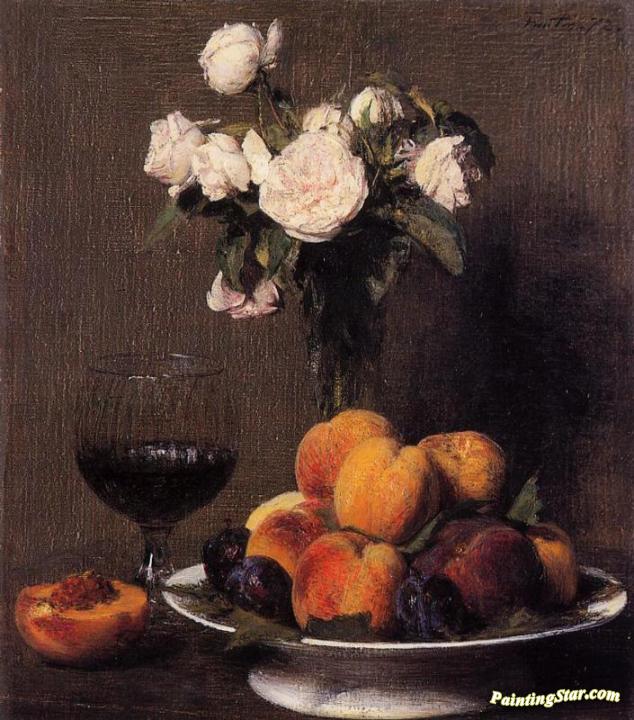 Still Life with Roses, Fruit and a Glass of Wine, Art Painting by Henri Fantin-Latour