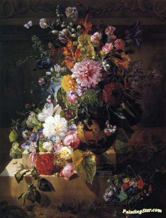 Still Life With Roses, Peonies, Lilac, Morning Glories And Other Flowers In A Greek Vase On A Stone Plinth, Art Painting by Georgius Jacobus Johannes van Os
