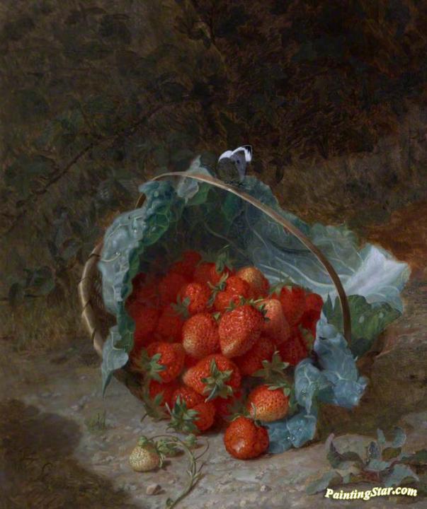 Still Life with Strawberries in a Cabbage Leaf in a Basket, Art Painting by Eloise Harriet Stannard