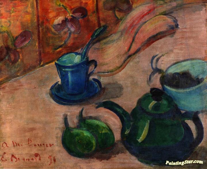 Still LIfe with Teapot, Cup and Fruit, Art Painting by Émile Bernard