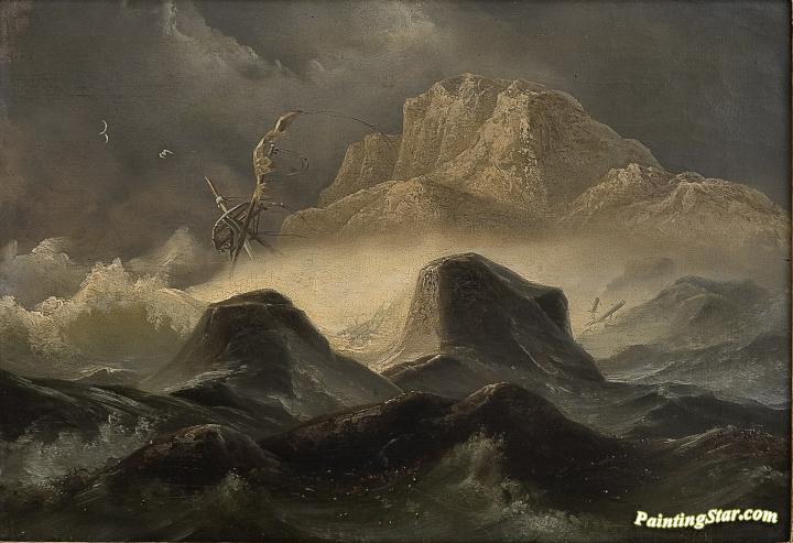 Storm on the Norwegian coast, Art Painting by Knud Andreassen Baade