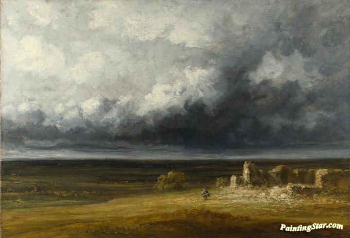 Stormy Landscape with Ruins on a Plain, Art Painting by Georges Michel