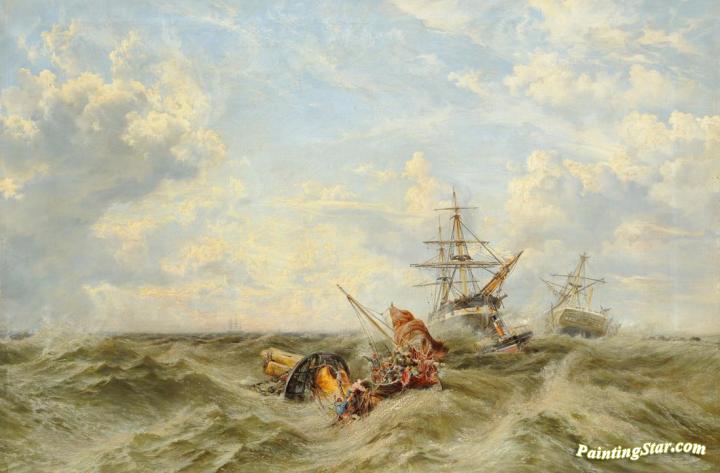 Stormy Seascape with Figures Being Rescued from Wreckage, Art Painting by Keeley Halswelle