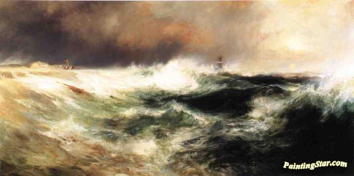 Stranded Ship On East Hampton Beach, Art Painting by Thomas Moran