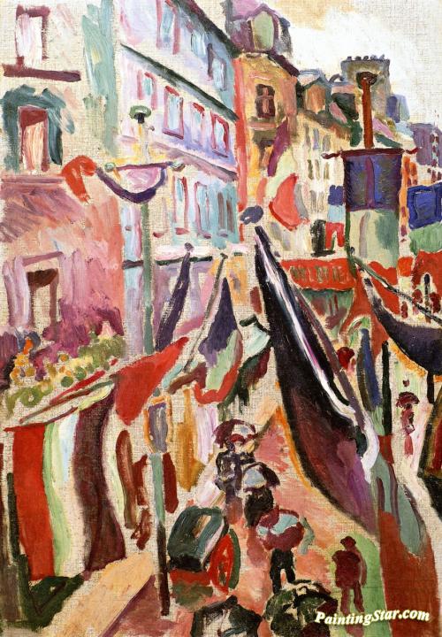 Street Decorated with Flags in Havre, Art Painting by Raoul Dufy