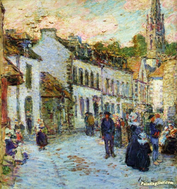 Street in Pont Aven - Evening, Art Painting by Frederick Childe Hassam