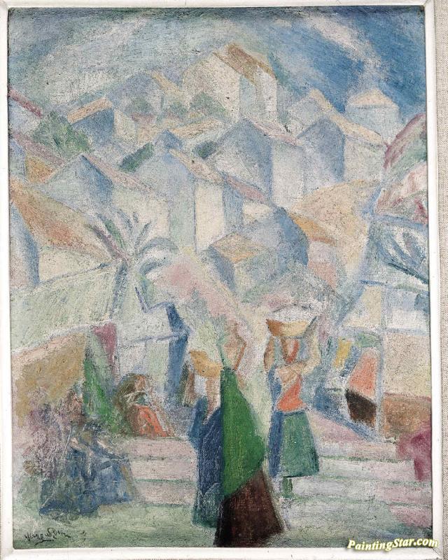 Street In Portugal, Art Painting by Daniel Vazquez Diaz