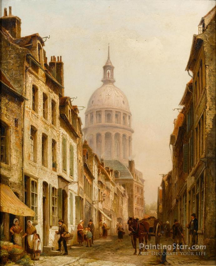 Street Scene, Boulogne Sur Mer, Art Painting by Cornelis Christian Dommelshuizen