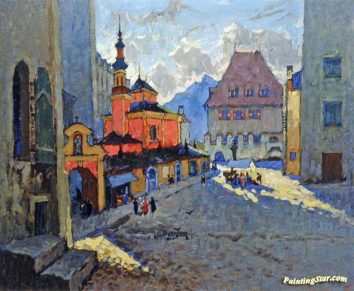 Street View with a Church, Art Painting by Konstantin Gorbatov
