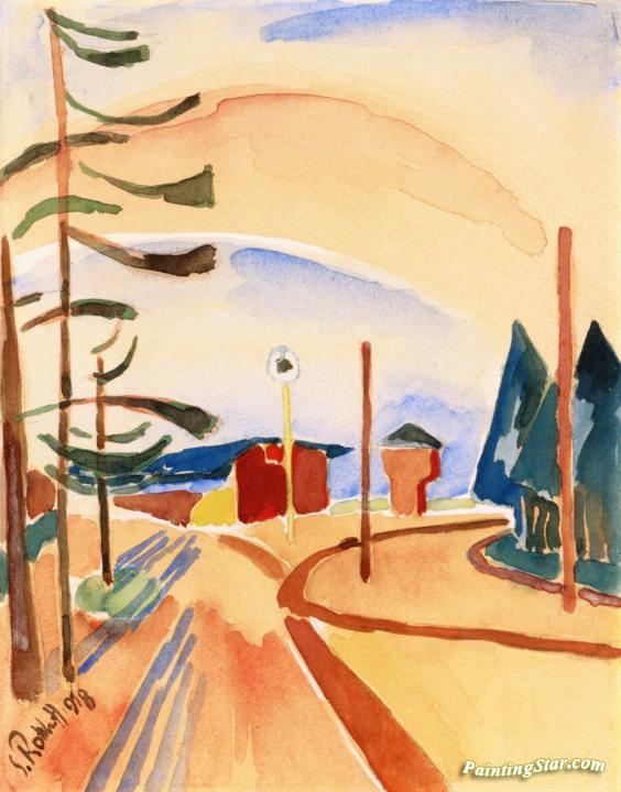 Street with Sheds and Trees, Art Painting by Karl Schmidt Rottluff