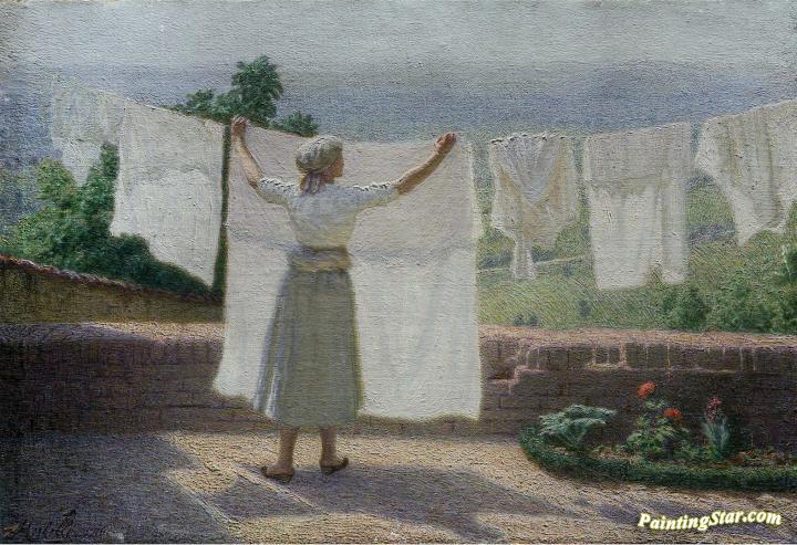 Stretching clothes in the sun, Art Painting by Angelo Morbelli