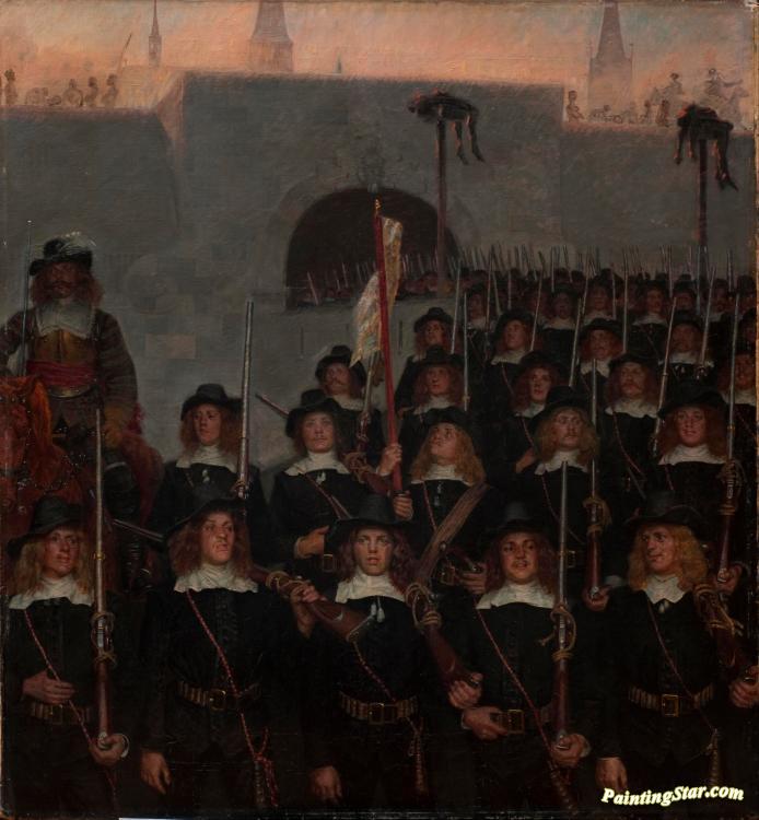 Students leave to defend Copenhagen in 1658, Art Painting by Kristian Zahrtmann
