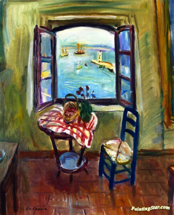 Studio Window open over the Port of Saint Tropez, Art Painting by Charles Camoin