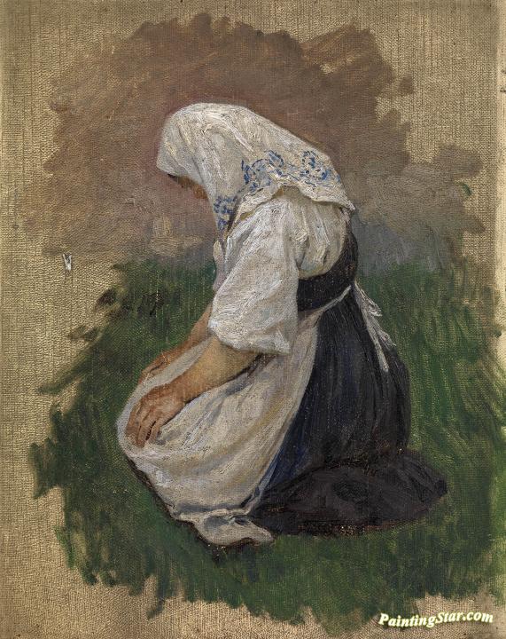 Study of a Kneeling Woman, Art Painting by Klavdi Vasilievich Lebedev