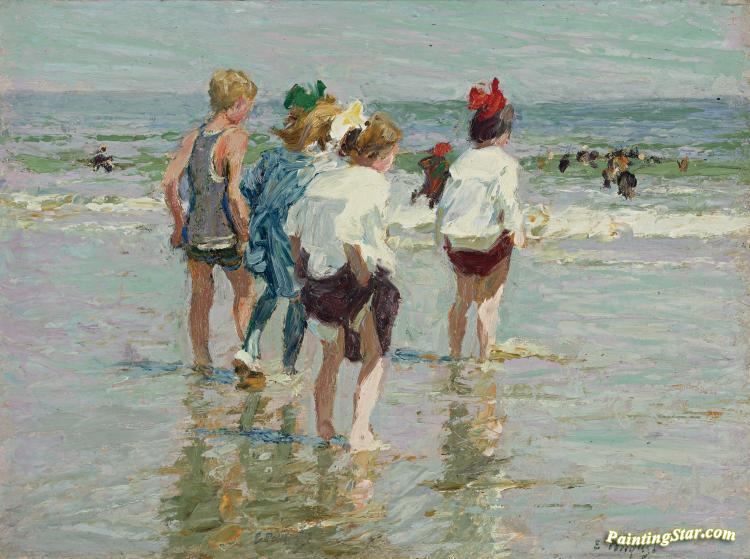 Summer Day, Brighton Beach, Art Painting by Edward Potthast