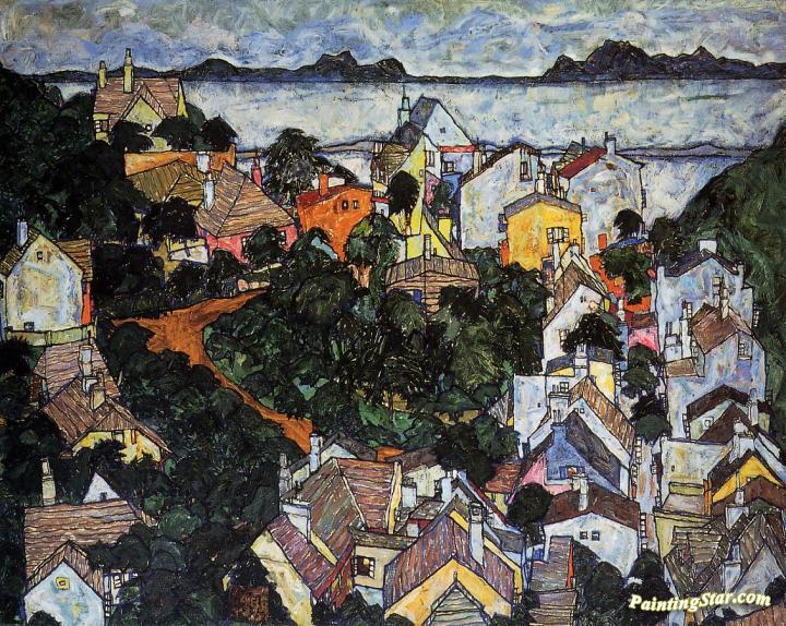 Summer Landscape, Krumau, Art Painting by Egon Schiele