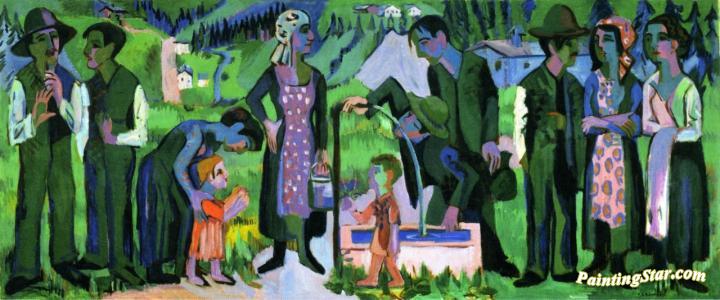 Sunday in the Alps: Scene at the Well, Art Painting by Ernst Ludwig Kirchner