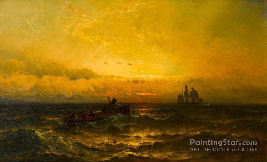 Sunrise, Hove To Off The Coast, Art Painting by Mauritz F. H. De Haas