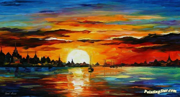 Sunrise in the harbor, Art Painting by Leonid Afremov