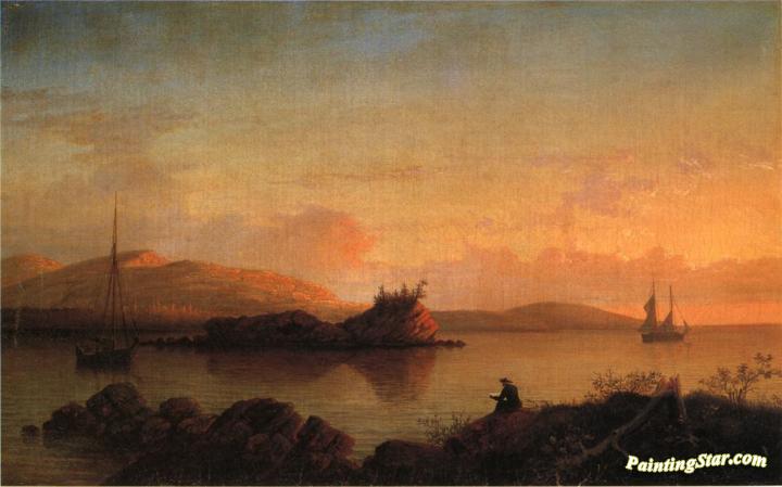 Sunrise on the Maine Coast, Mount Desert Island, Art Painting by Fitz Hugh Lane