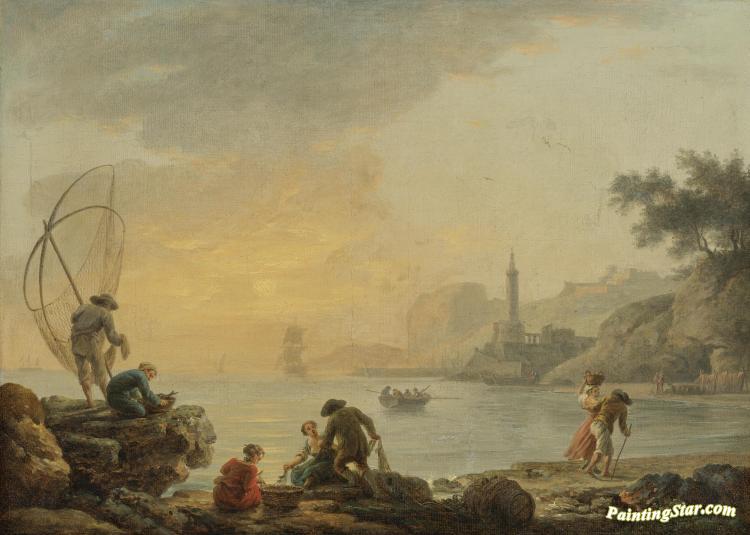 Sunrise With Fishermen, Art Painting by Claude-Joseph Vernet