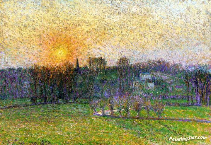 Sunset, Bazincourt, Art Painting by Camille Pissarro