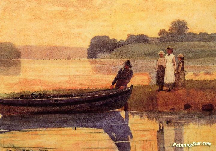 Sunset: Beaching the Boat, Art Painting by Winslow Homer