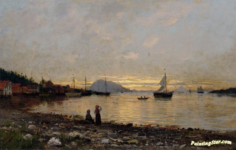 Sunset By A Rocky Shore, Art Painting by Adelsteen Normann