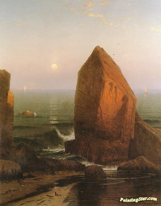 Sunset-Moonrise, on Iron Round Island, Mr. Desert, Maine, Art Painting by Alfred Thompson Bricher