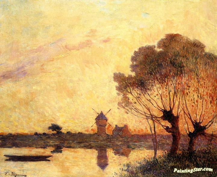 Sunset over La Briere, Art Painting by Ferdinand du Puigaudeau
