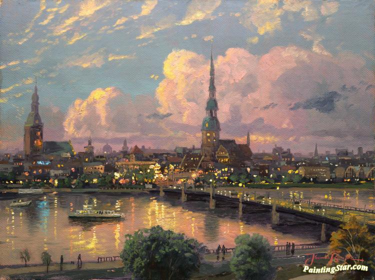 Sunset Over Riga Latvia, Art Painting by Thomas Kinkade