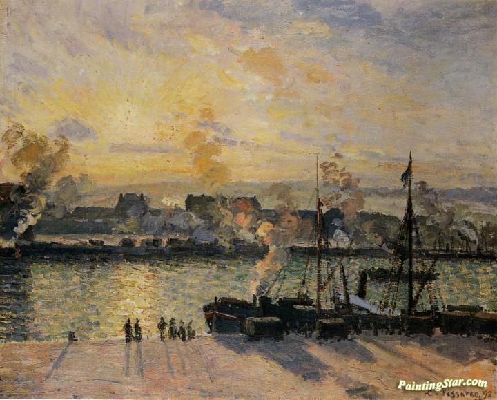 Sunset, the Port of Rouen, Art Painting by Camille Pissarro