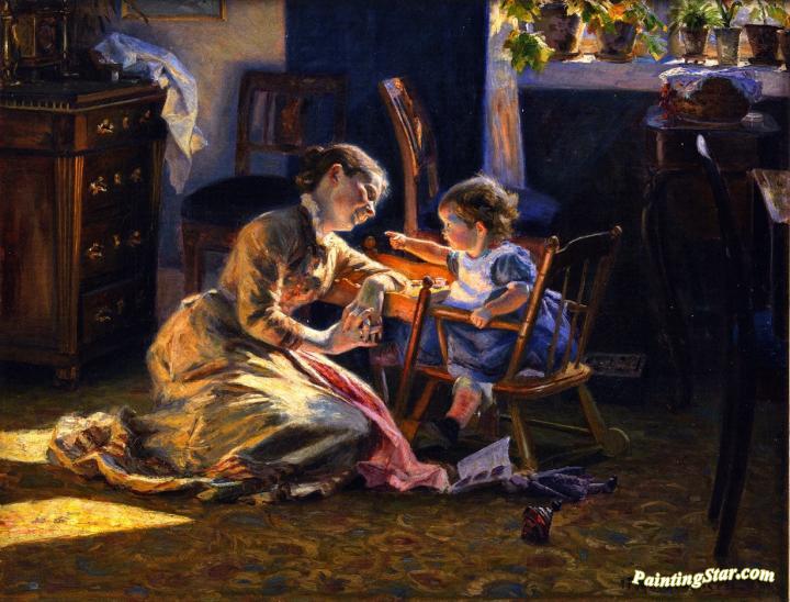 Sunshine In The Living Room, The Artist's Wife And Child, Art Painting by Viggo Pedersen