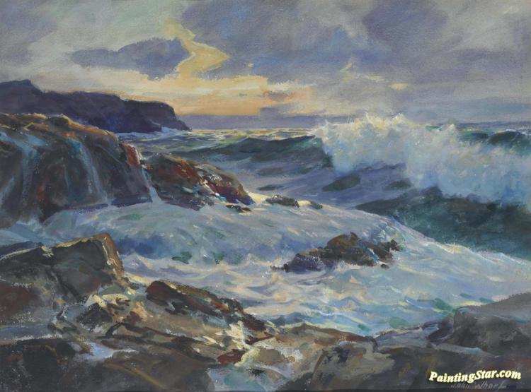 Surf At Sunset, Art Painting by John Whorf