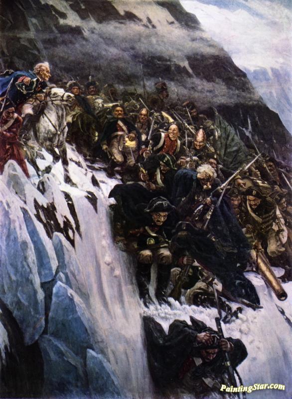 Suvorov Crossing The Alps, Art Painting by Vasili Ivanovich Surikov