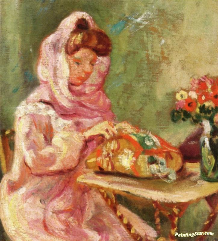 Suzanne Valtat Embroidering, Art Painting by Louis Valtat