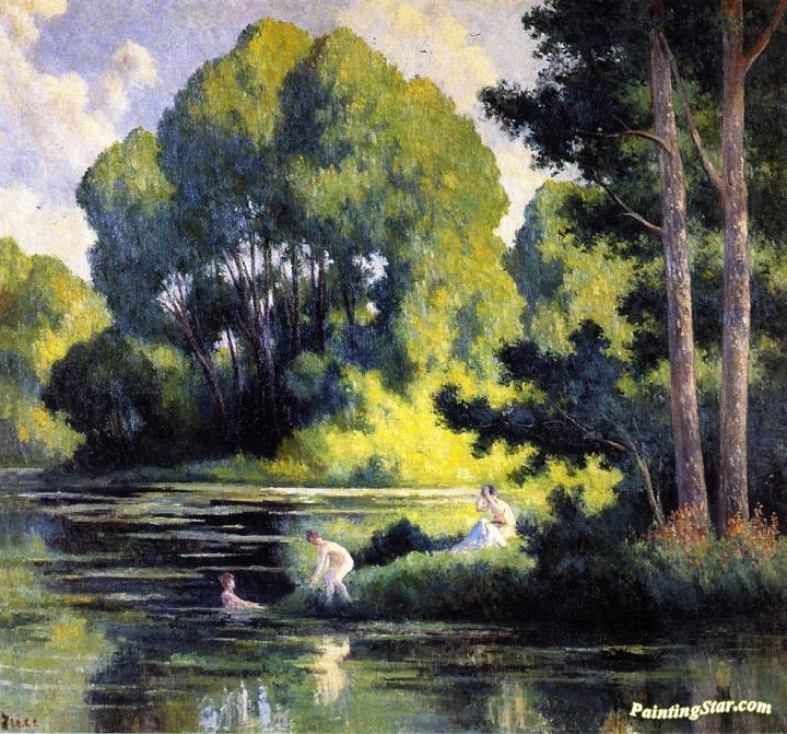 Swimming at Rolleboise, Art Painting by Maximilien Luce