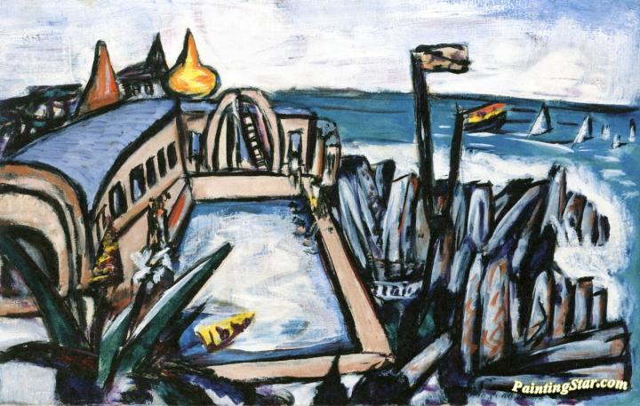 Swimming Pool In Cap Martin, Art Painting by Max Beckmann