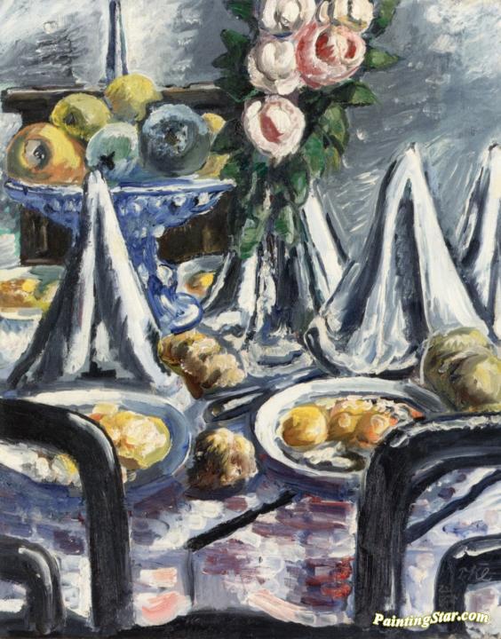 Table Set with Napkins and Roses, Art Painting by Paul Kleinschmidt