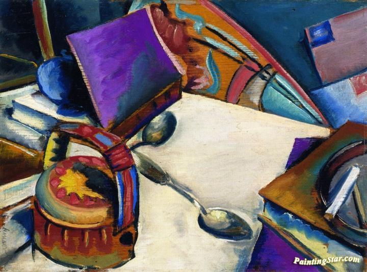 Tabletop Still LIfe: Books ad Teapot, Art Painting by Preston Dickinson