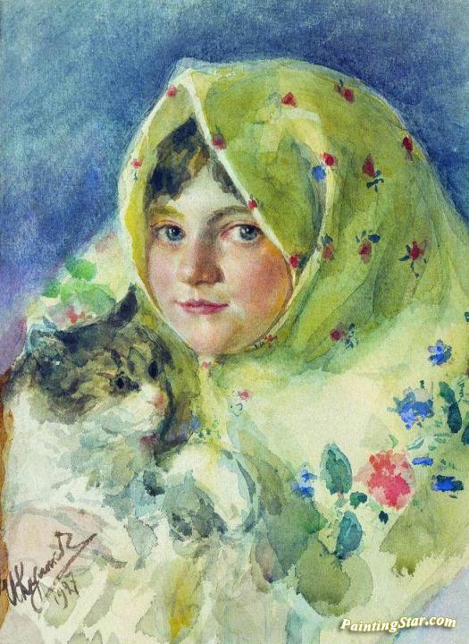 Tanya with Cat, Art Painting by Ivan Kulikov