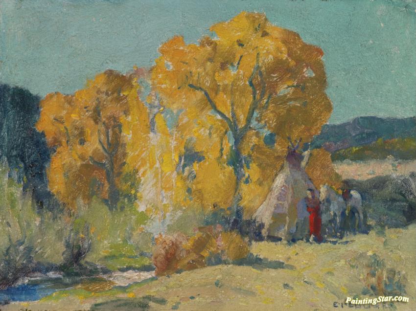 Taos Canyon Camp, Art Painting by E. Irving Couse