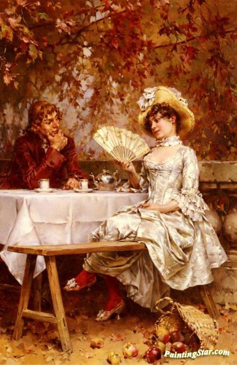Tea In The Garden, Autumn, Art Painting by Frederik Henrdik Kaemmerer