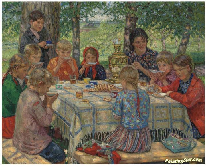 Teacher's Birthday, Art Painting by Nikolai Petrovich Bogdanov-belsky