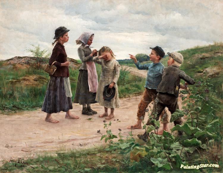 Teasing Children(1885), Art Painting by Fanny Brate