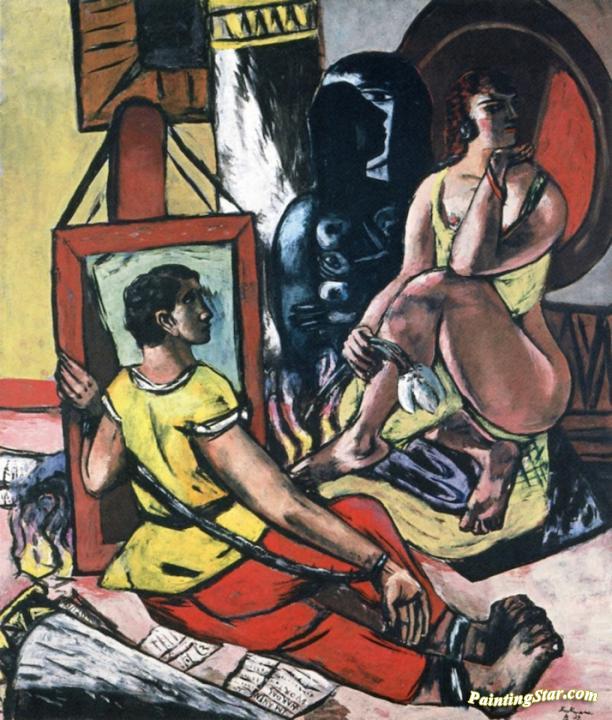 Temptation (triptych - Middle Panel), Art Painting by Max Beckmann