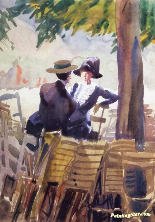 Tête-à-tête, Luxembourg Gardens, Art Painting by Frank Nelson Wilcox