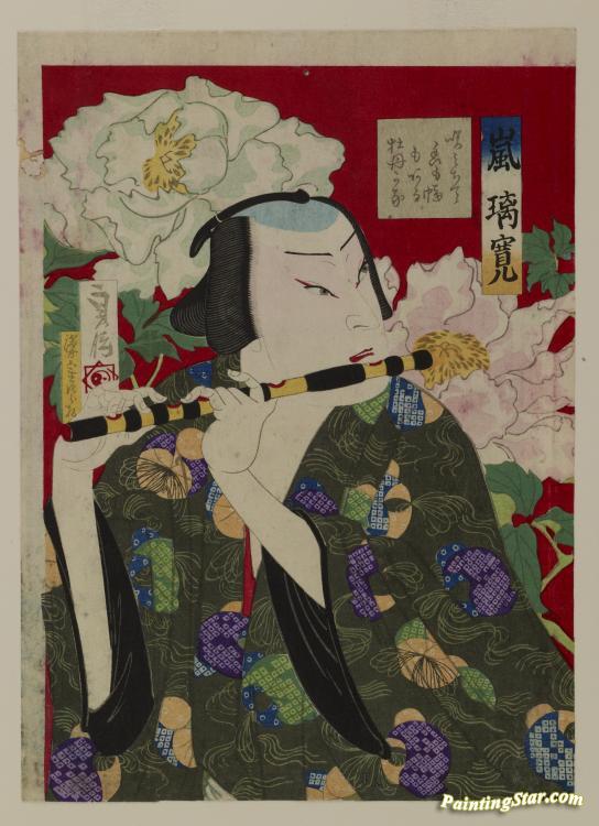 The Actor Arashi Rikan Iv Playing The Flute, Art Painting by Sadanobu I