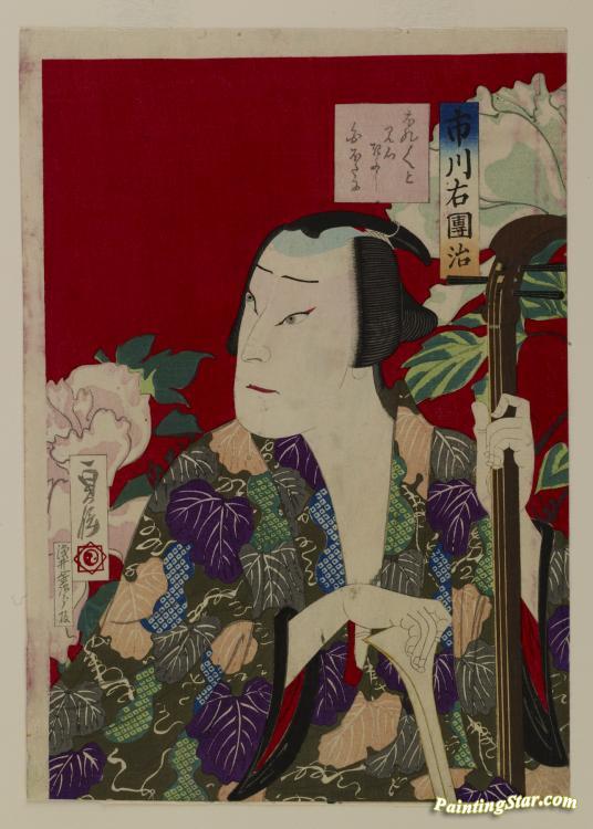 The Actor Ichikawa Udanji I Playing A Shamisen, Art Painting by Sadanobu I